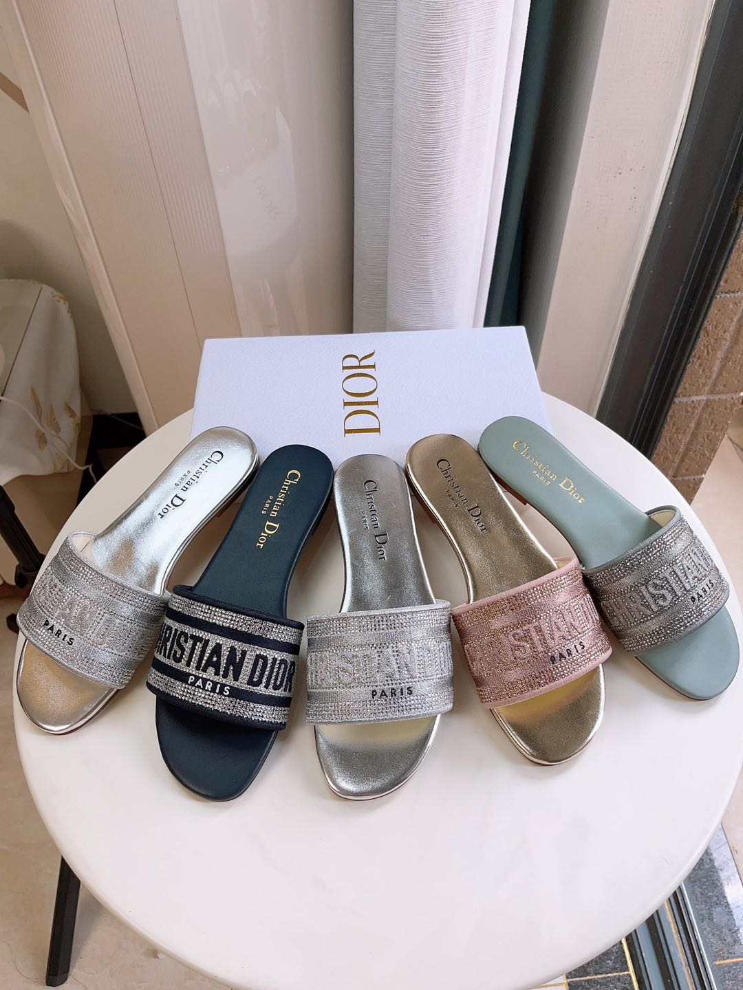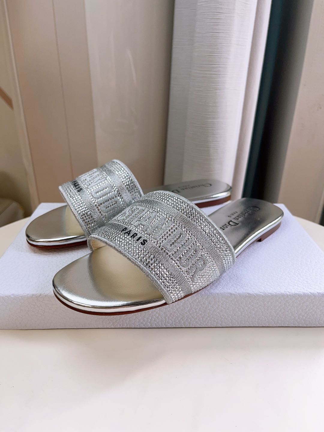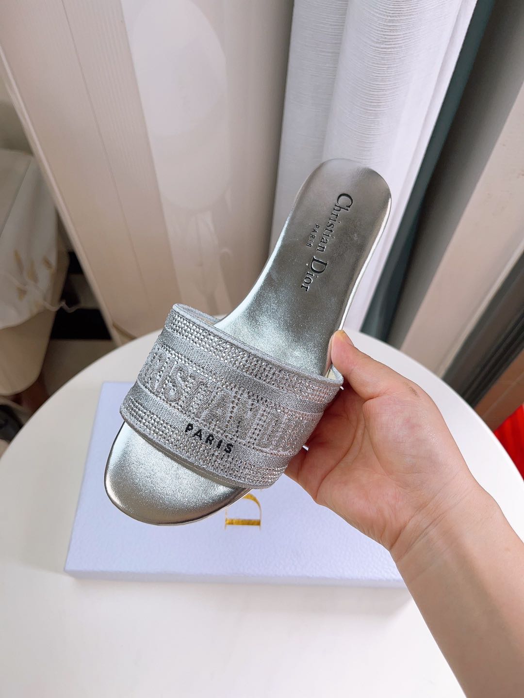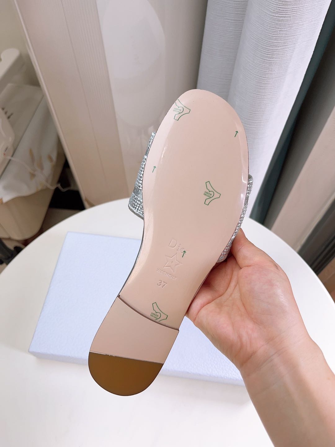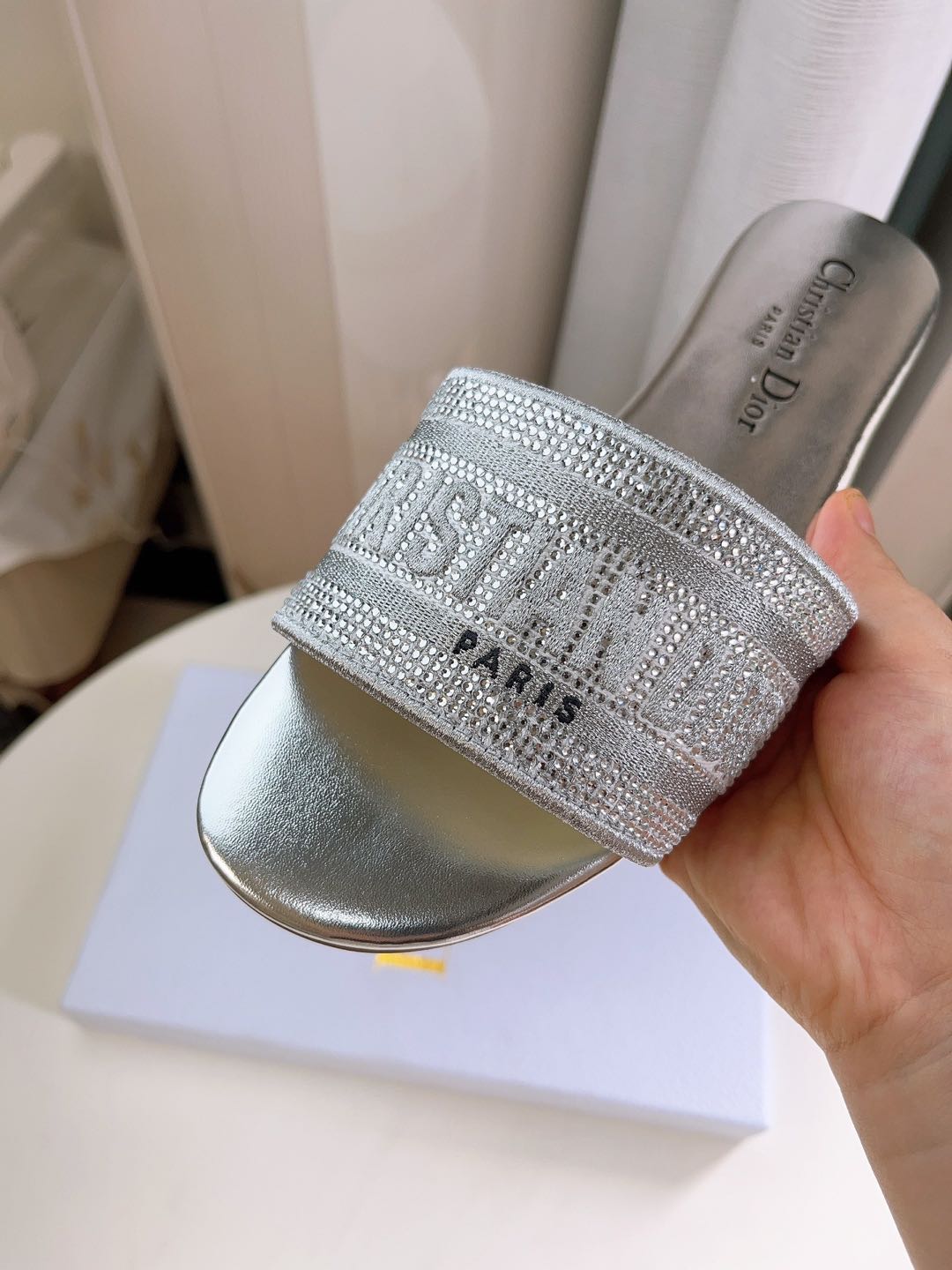 • Dior DWAY Slide Slipper Sandals  With Diamonds (Replica)