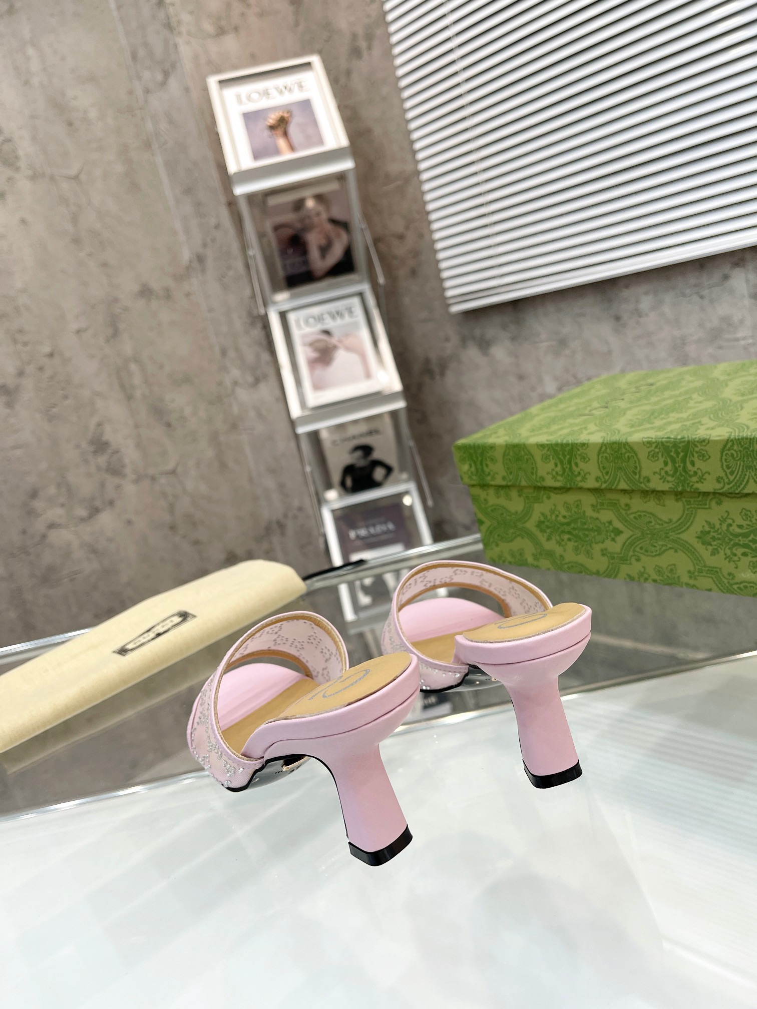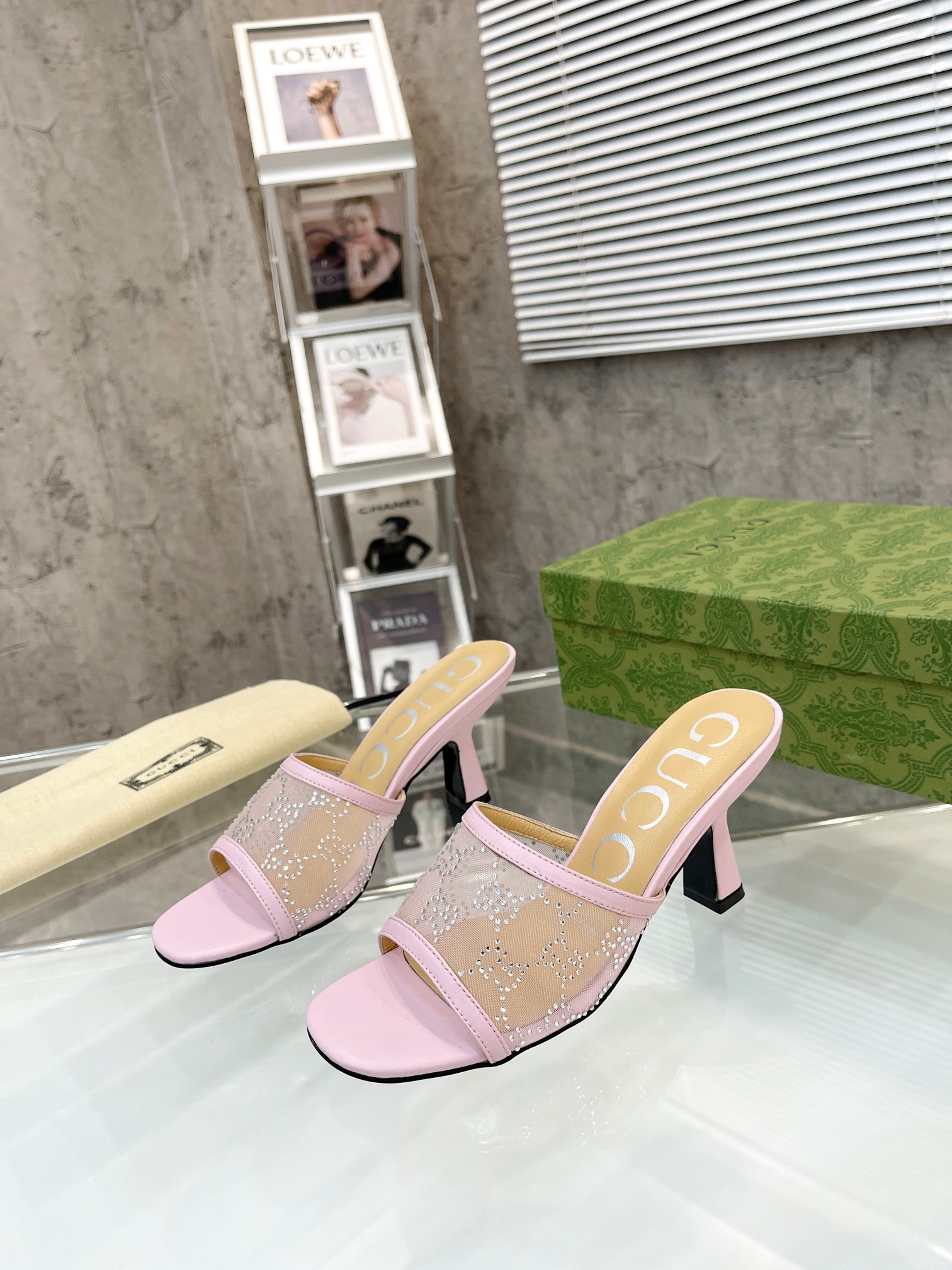 • Gucci Mesh High heel Sandals Slide Sandal (Replica)