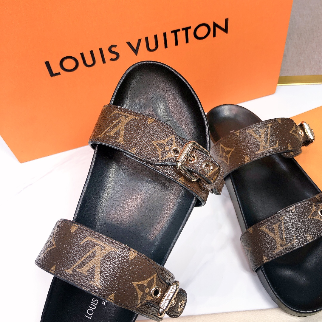 • Louis Vuitton LV Bom Dia Flap Mule Leather Slide Sandals  (Replica)