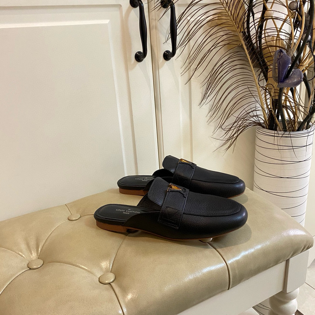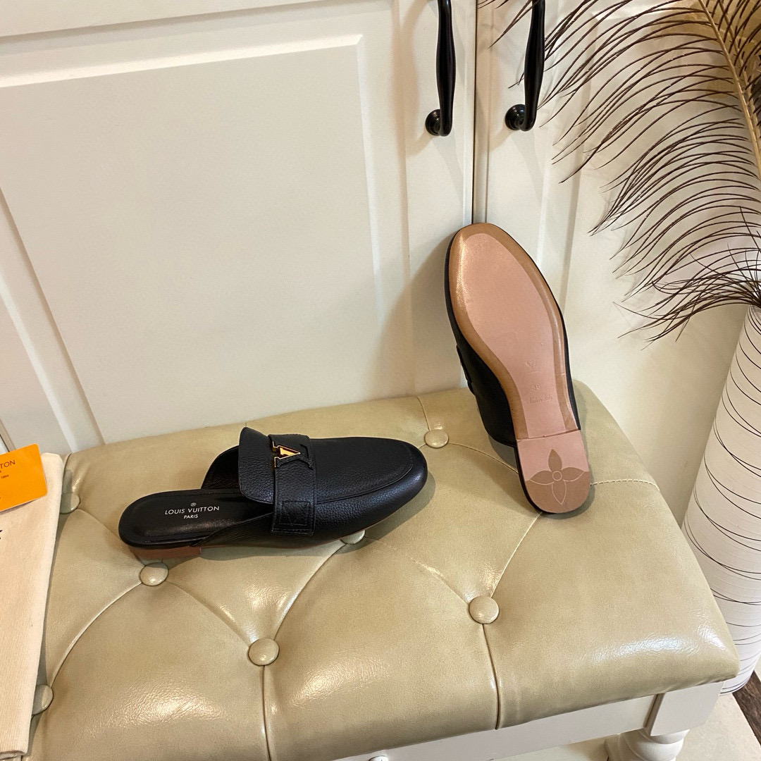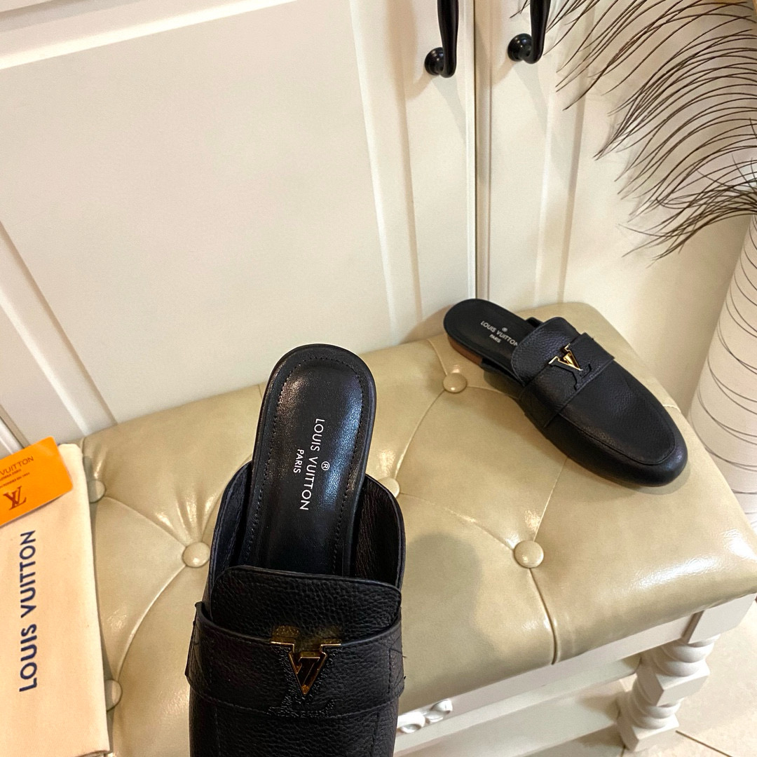 • Louis Vuitton LV Leather Half-Pack Slingback Slide Sandals (Replica)