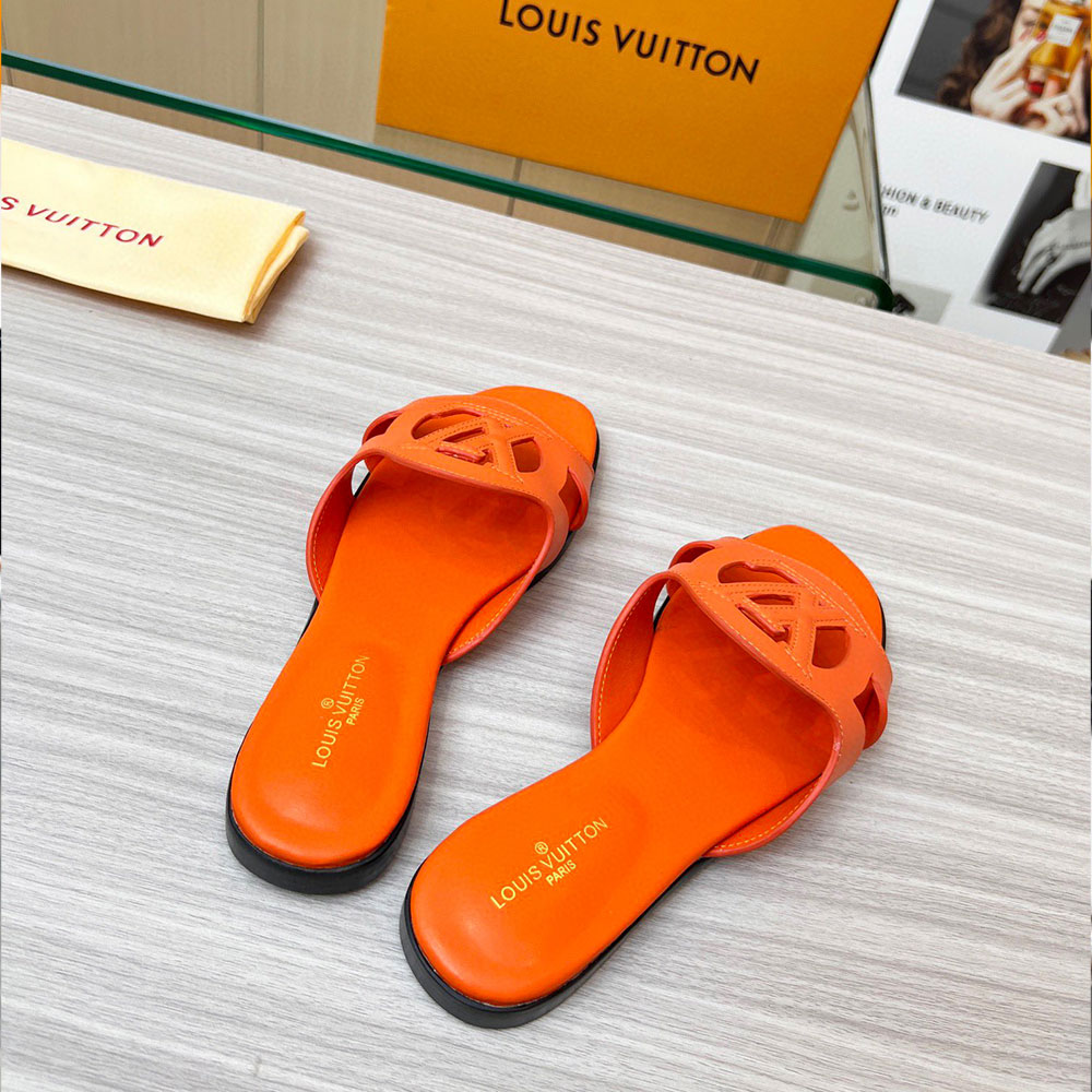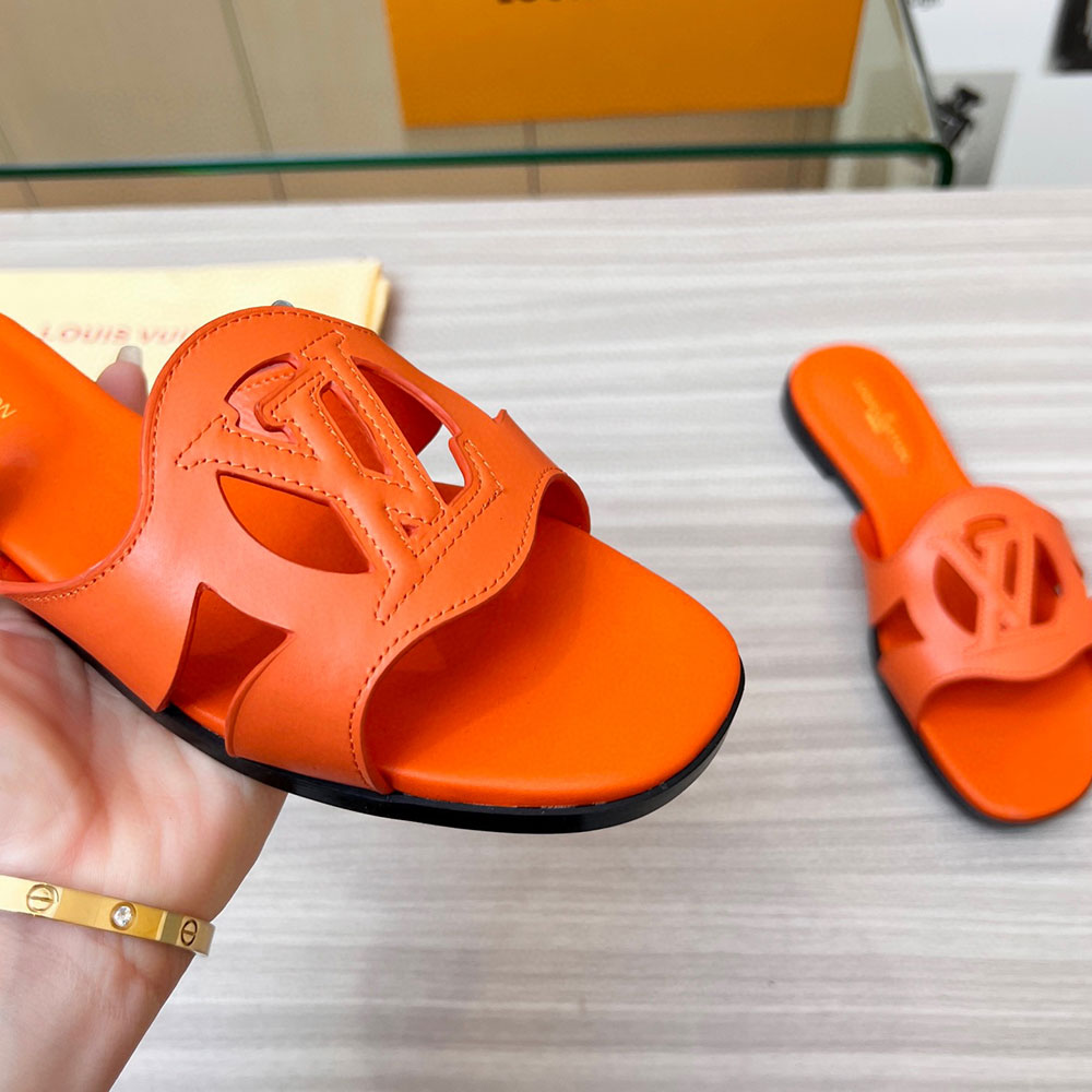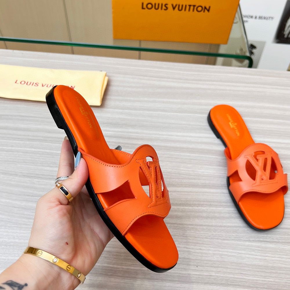 • Louis Vuitton LV Lsola Leather Flat Aandals Slide Sandal (Replica)
