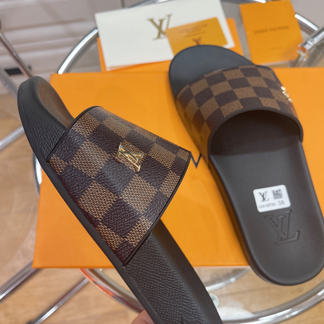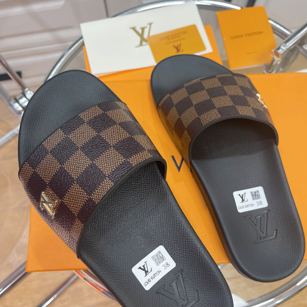 Louis Vuitton LV Rubber Fashion Plaid Flip-flops Slide Sandal (Replica)