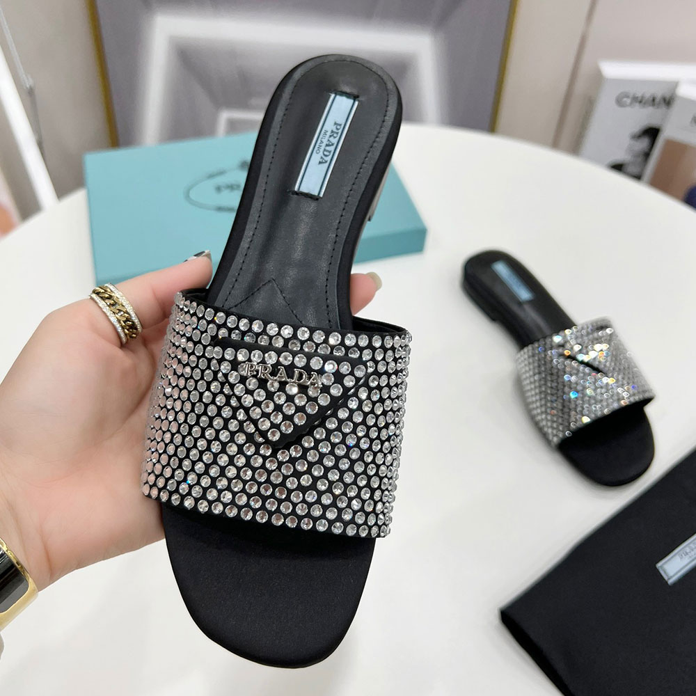 Home / Prada Shoes / Prada Flat Bottom Band Drill Slide Sandal (Replica)