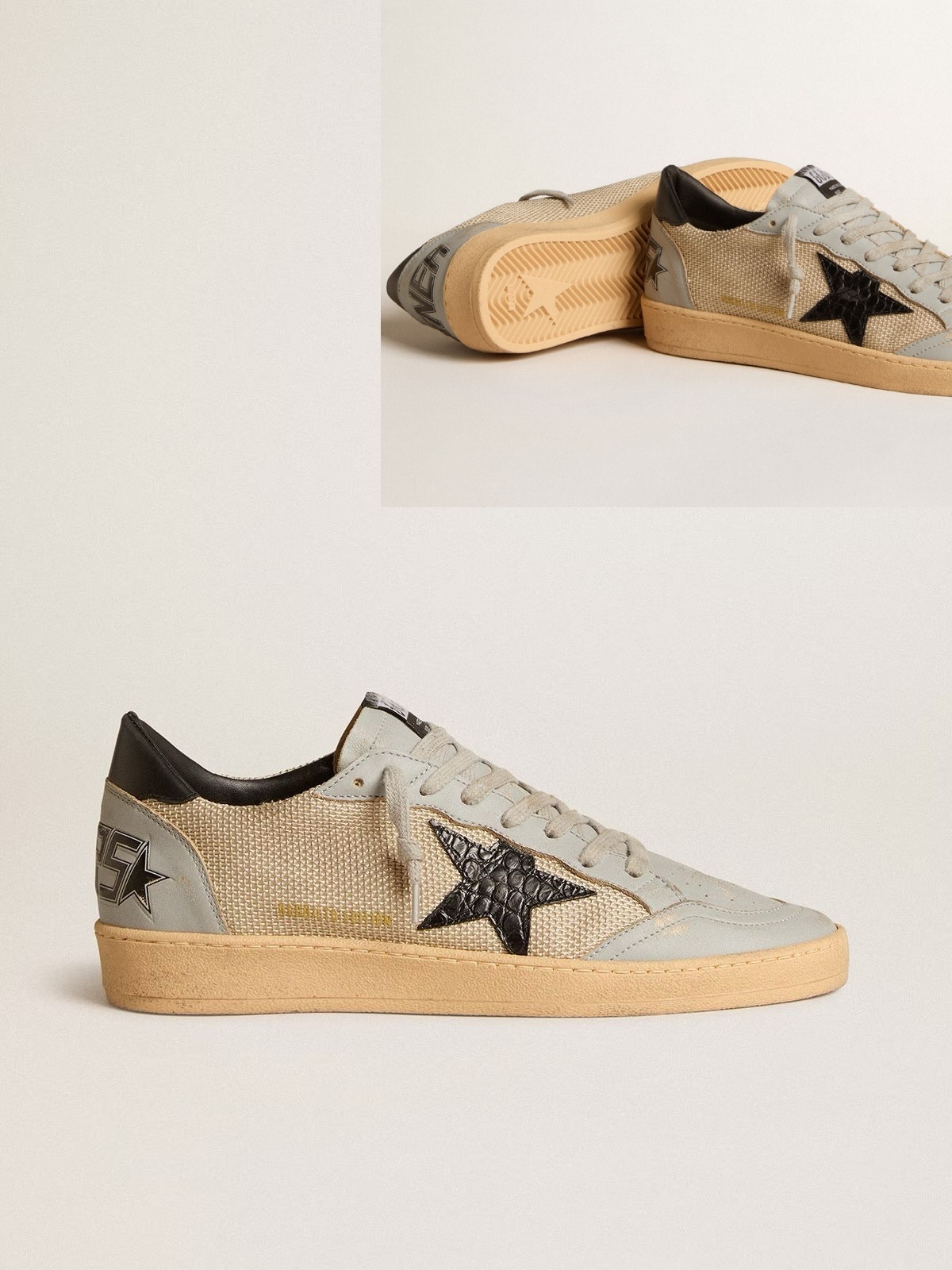 Golden Goose GGDB Men's Ball Star LTD in beige mesh with croc-print leather star and nappa inserts